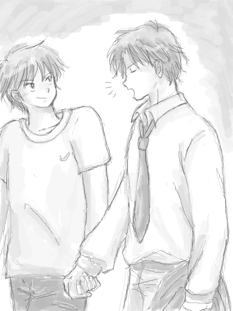 デキてる二人を描くのは初めてでしたっ。(手繋いでるだけだけど。笑